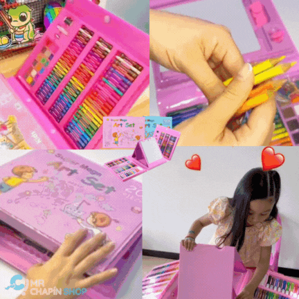 Con una amplia gama de lápices, crayones y acuarelas, los niños tienen todo lo que necesitan para experimentar y encontrar su estilo. Este set no solo inspira creatividad, sino que también ayuda a desarrollar habilidades artísticas en crecimiento.