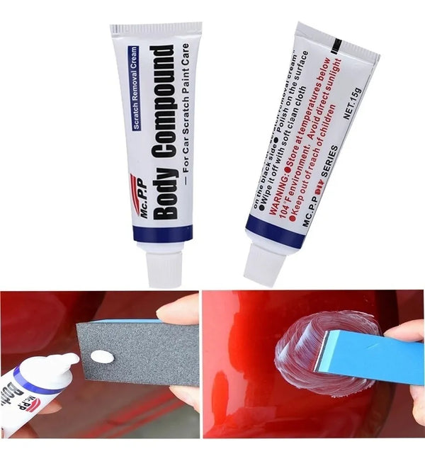El kit incluye un compuesto abrasivo y una brocha para facilitar la aplicación y asegurar un acabado profesional.